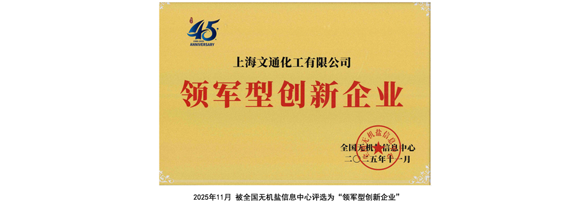 2025年11月 上海文通化工有限公司被全國無機(jī)鹽信息中心評(píng)選為“領(lǐng)軍型創(chuàng)新企業(yè)”